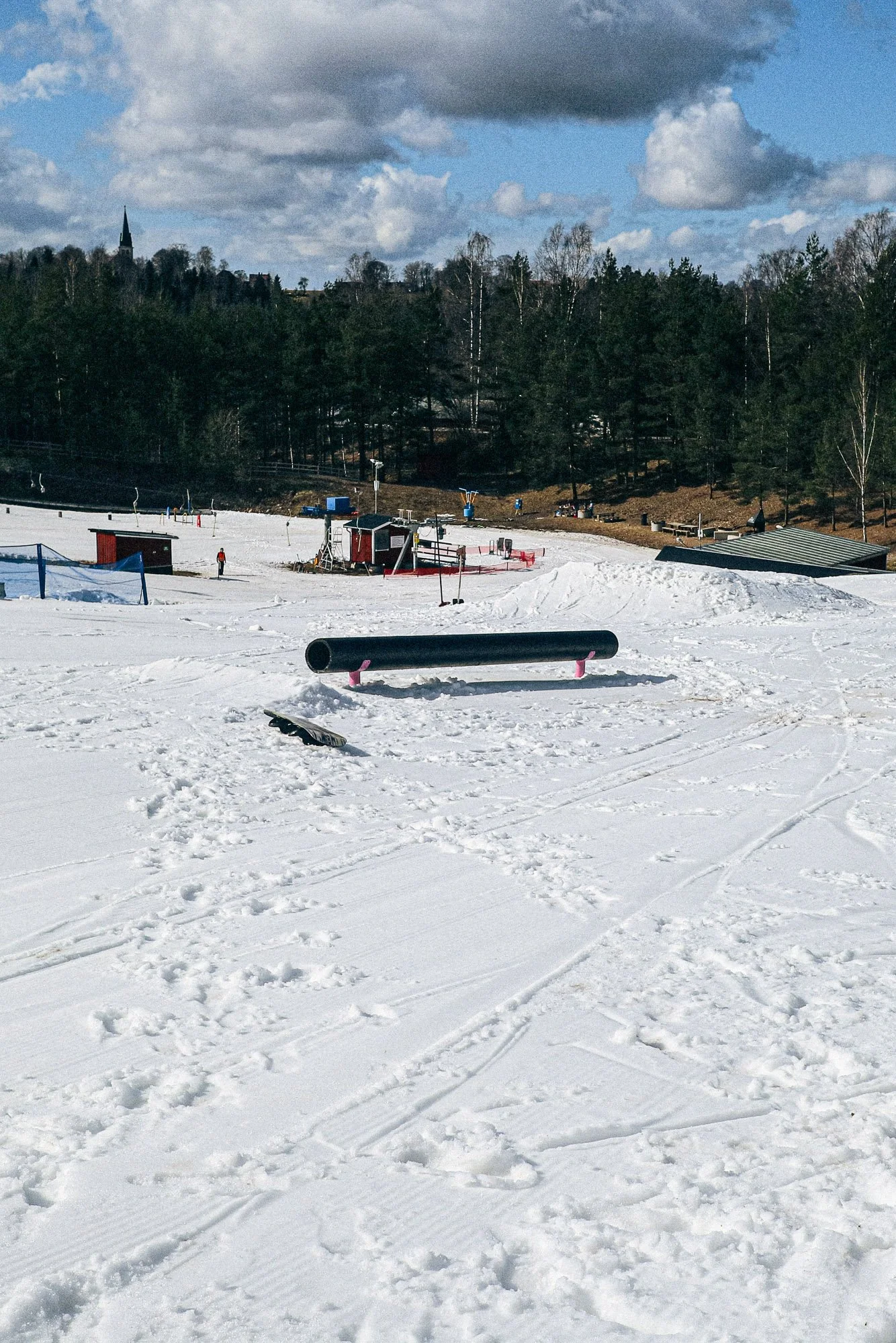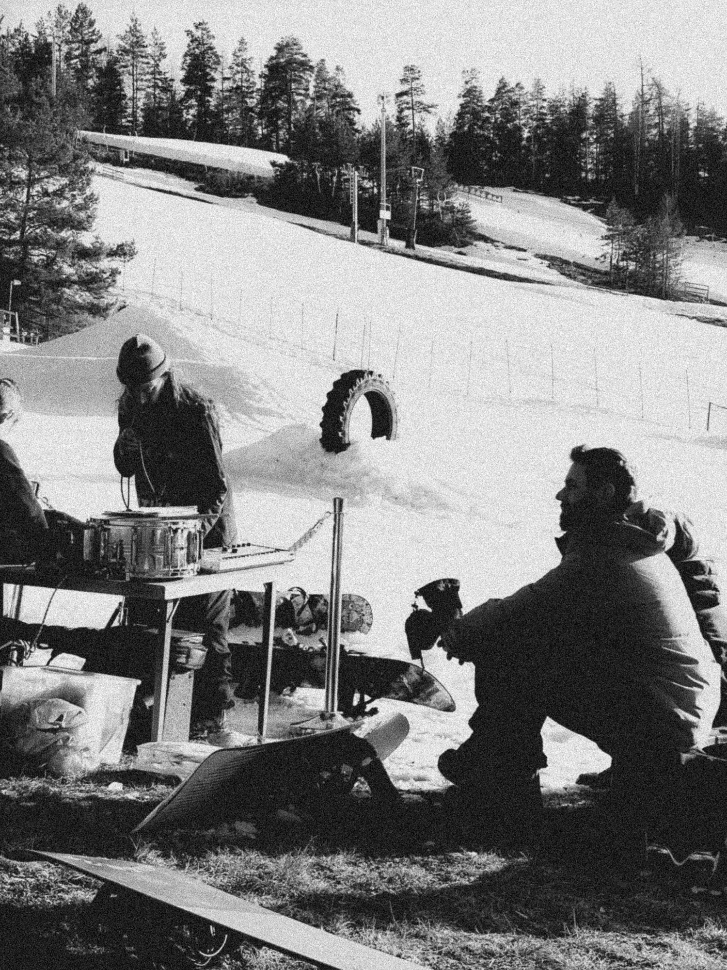 Ett glatt knippe bindningsknäppare vårdade sina brädåkarsjälar under på våran vårvarma variant av snowboard session i Frykstabacken, Kil, Värmland, Sverige i Lördags.