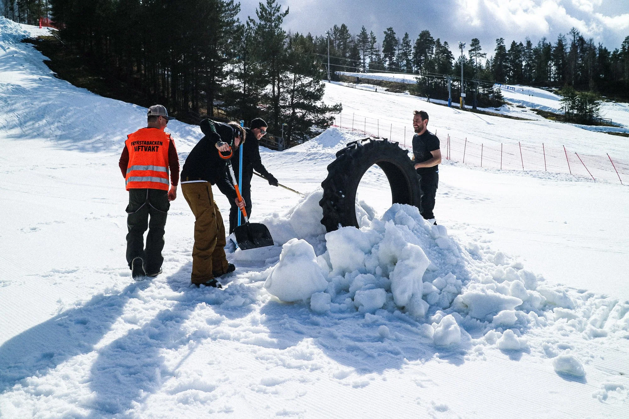 Tobias Ström och Gustav samt de andra som sliter hårt med att förse backen med snö.